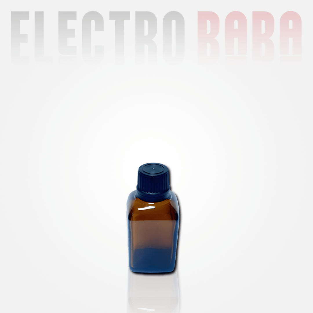 • Flacon en verre ambré de 30 ml avec bouchon noir à vis, conçu pour assurer une conservation optimale des liquides sensibles à la lumière.